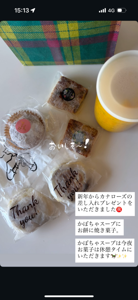 カナローズからまた手作りの焼き菓子とかぼちゃのスープの差し入れもいただきました。